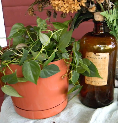 Using a vintage minnow bucket I arranged dried flowers (from my friend Barb's garden).